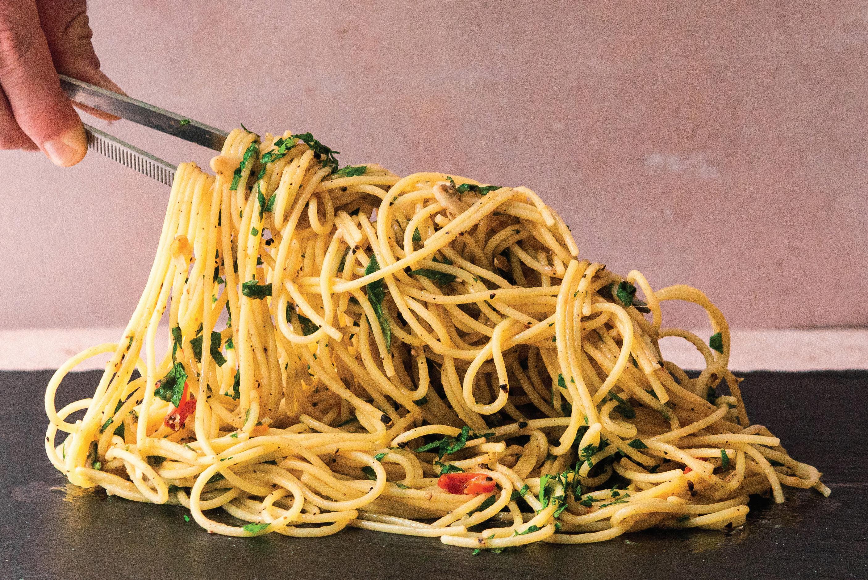 5. Add the fresh parsley and toss it with the pasta. Now, you’re ready to plate. Finish with some freshly ground black pepper, just to get an extra kick, but you do you. Sorry, Italians!