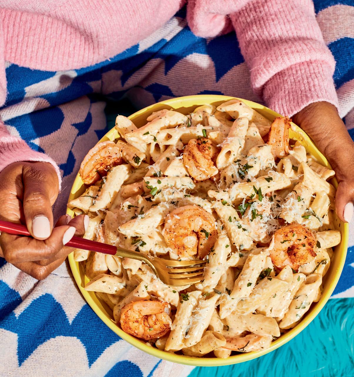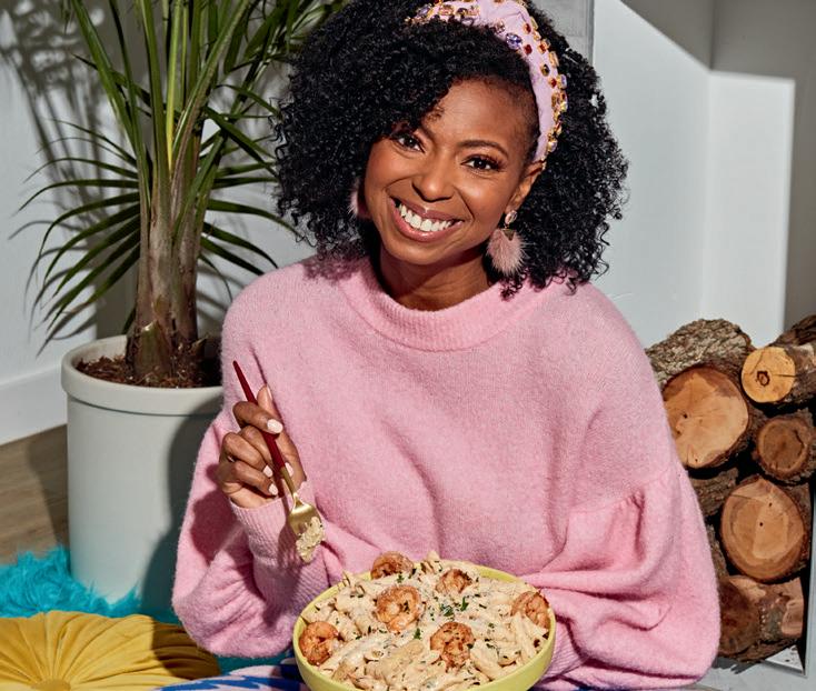Although made with just as much soul, “Everyday Grand” is starkly different from Delk Adams’ first writing venture, one of the main ways being, it gives savory flavors a whole lot more love. Whether it be her mom’s comforting homemade chicken soup recipe, a creamy Louisiana Cajun Shrimp Alfredo (see the recipe above), or a done-in-30minutes lasagna stew (which Kelly and Ryan themselves “flipped out for” when she made the dish on “Kelly and Ryan Live,” says Delk Adams), she makes sure to pay proper homage to what is, in her opinion, the best kind of food—soul food. With her brand established upon the success of her dessert recipes, she was overjoyed to showcase her savory side—especially as she was raised on soulful flavors—recipes that feel like home to her, even after adding her trademark twists.