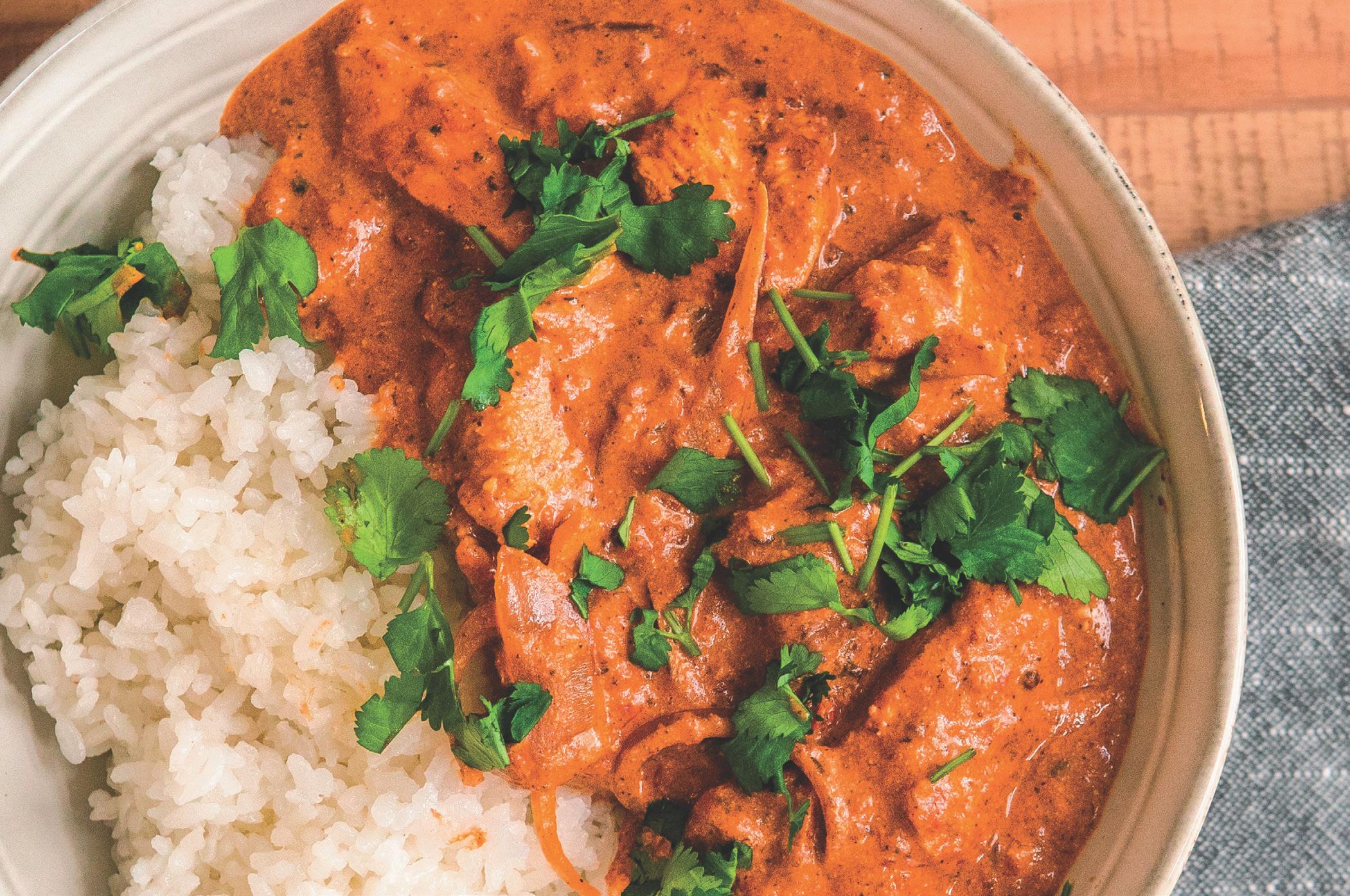 6. Add the chicken to the sauce and gently simmer for 1 to 2 minutes, or until warmed and cooked through. Top the dish with fresh cilantro and serve.