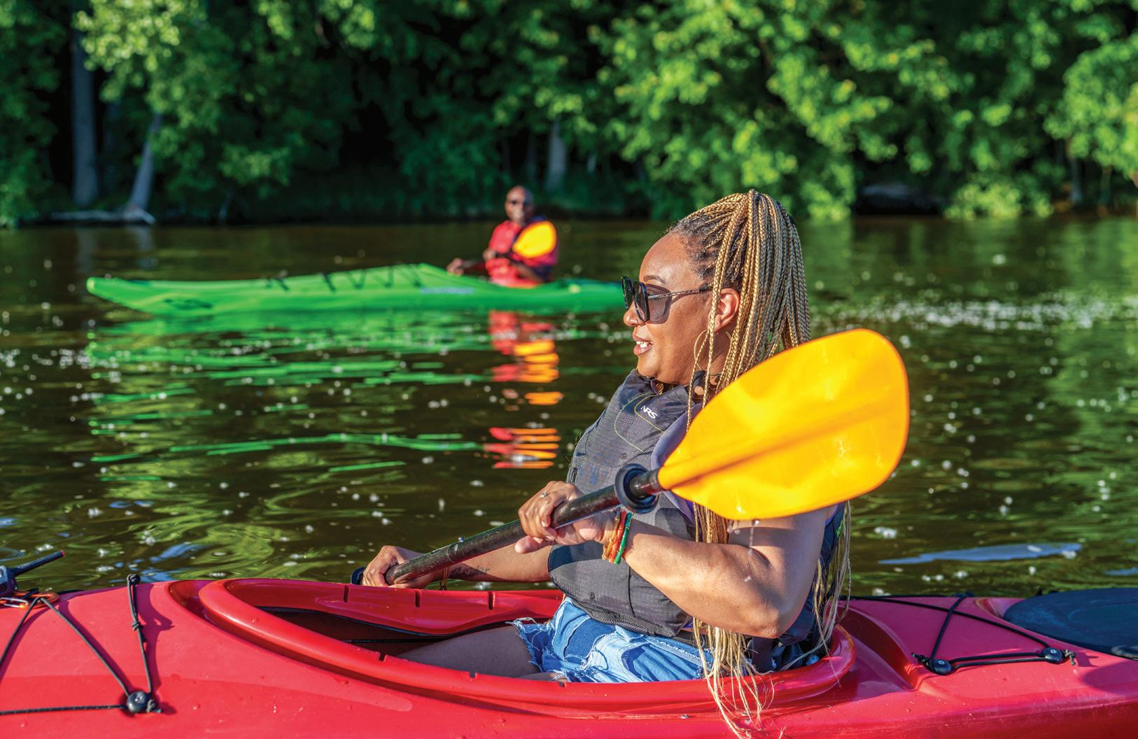 MUST-SEES & -DOS: Friends Good Will, a replica of a 19thcentury merchant sailboat, accommodates 28 for ventures on Lake Michigan. Or, take a cruise on the Sun Setter, an ex U.S. Navy utility launch boat that hosts 45 minute scenic day cruises and 75 minute sunset excursions. For kayak, canoe, paddleboard, and floating mat rentals, the SoHa Surf Shop accommodates. Those wanting to stretch their legs can bike or hike the Kal Haven Trail between South Haven and Kalamazoo. Many craft beverage producers operate in the region, including Michigan’s oldest winery—St. Julian Winery—which is a stone’s throw from Warner Vineyards in Paw Paw. southhaven.org