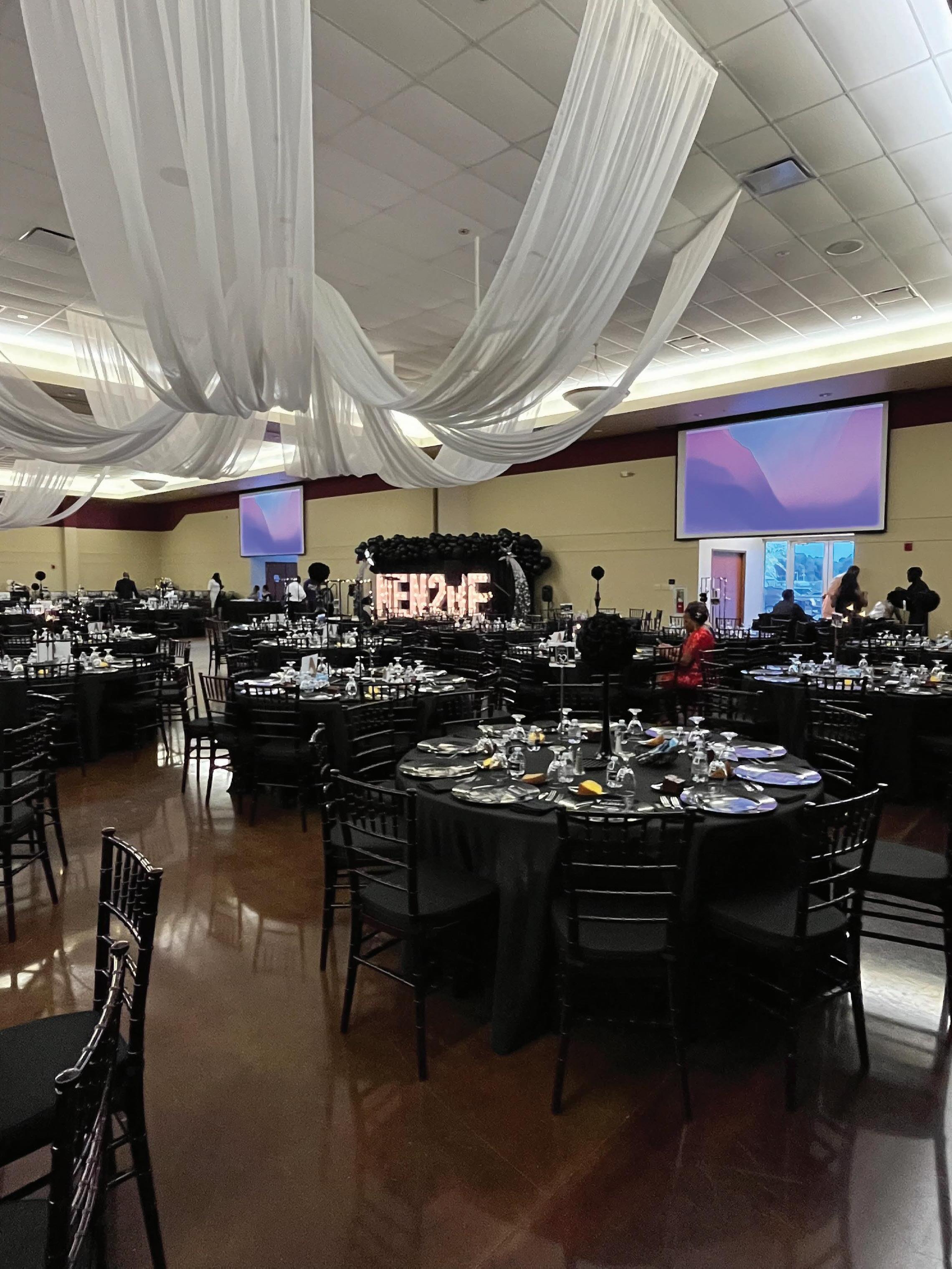 The center accommodates gatherings of up to 900 for meetings, expos, and trade shows with more than 24,000 square feet, Collins says. Other university meeting facilities include the historic Northbank Center with its Grand Ballroom, Harding Mott University Center, and smaller spaces across campus.