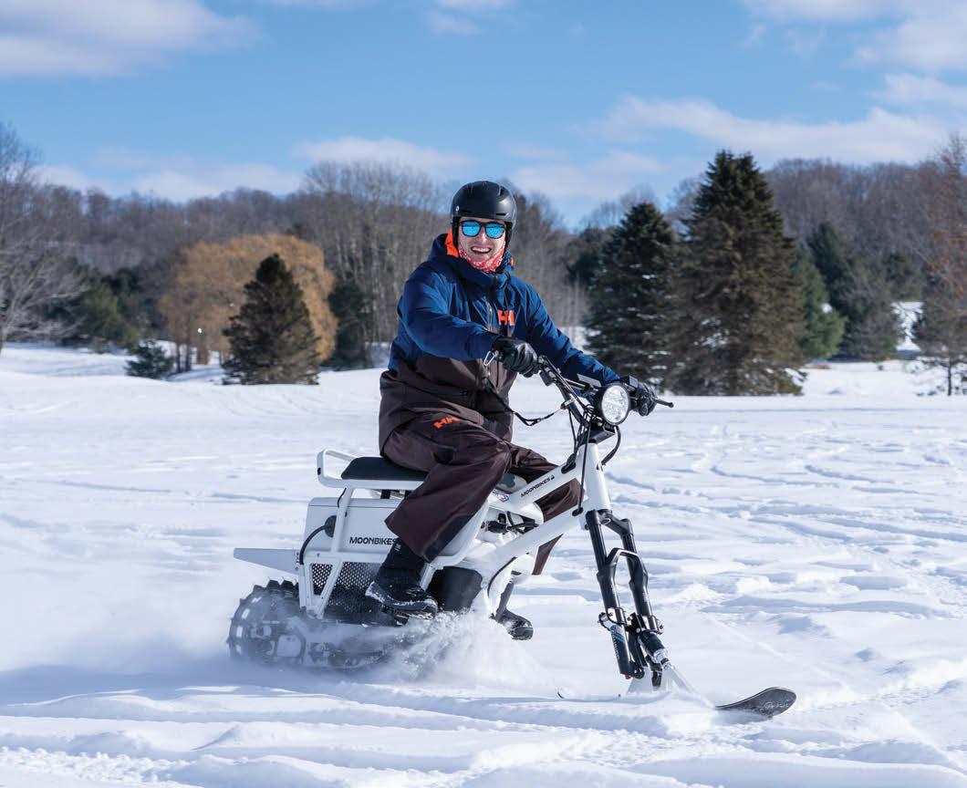 » BOYNE MOUNTAIN RESORT has added guided forest tours in the snow on MoonBikes to its roster of winter activities. “MoonBikes are a hybrid snow vehicle, combining the body of a bike and the power/torque of a snowmobile (although not quite as strong) with a powder ski in front,” says Boyne Mountain Director of Adventure Patrick Patoka. “They are 100% electric, making them a perfect fit for our resort’s environmental sustainability goals.