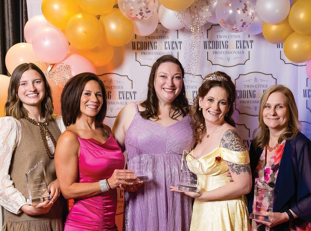 Twin Cities Wedding & Event Professionals (TCWEP) hosted a stylish Sweet 16 in early April at Leopold’s Mississippi Gardens in Brooklyn Park. In addtion to celebrating its 16th birthday, the organization honored area event-related companies and individuals who went above and beyond over the previous year with the evening’s 2025 TCWEP Awards. The gathering embraced the Sweet 16 theme from top to bottom: linens in vibrant pink and coral hues by Linen Effects of Minneapolis, florals bursting with yellow and pink roses, delicate alstroemeria courtesy of Minneapolis’ Studio B Floral, and uplighting that bathed the space in color by Complete Weddings + Events of South St. Paul. A playful balloon arch by Brooklyn Park’s Marsha’s Stitches served as both a photo op and an eye-catching feature wall. Minneapolis’ Mintahoe Catering & Events served up the main courses, while Keyed Up Events, Cardigan Donuts, and Thirsty Whale Bakery, all of Minneapolis, curated whimsical desserts.