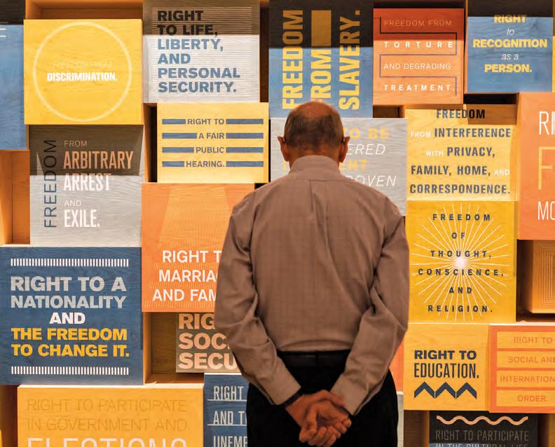 Permanent exhibits include the Holocaust/Shoah wing, telling the 3,000-year history of the Jewish people alongside the Nazi rise to power; the Human Rights wing, revealing how the world progressed in the years following the Holocaust; and the Pivot to America Wing, featuring interactive kiosks, films, testimonies and more exploring American ideals in relation to human rights.