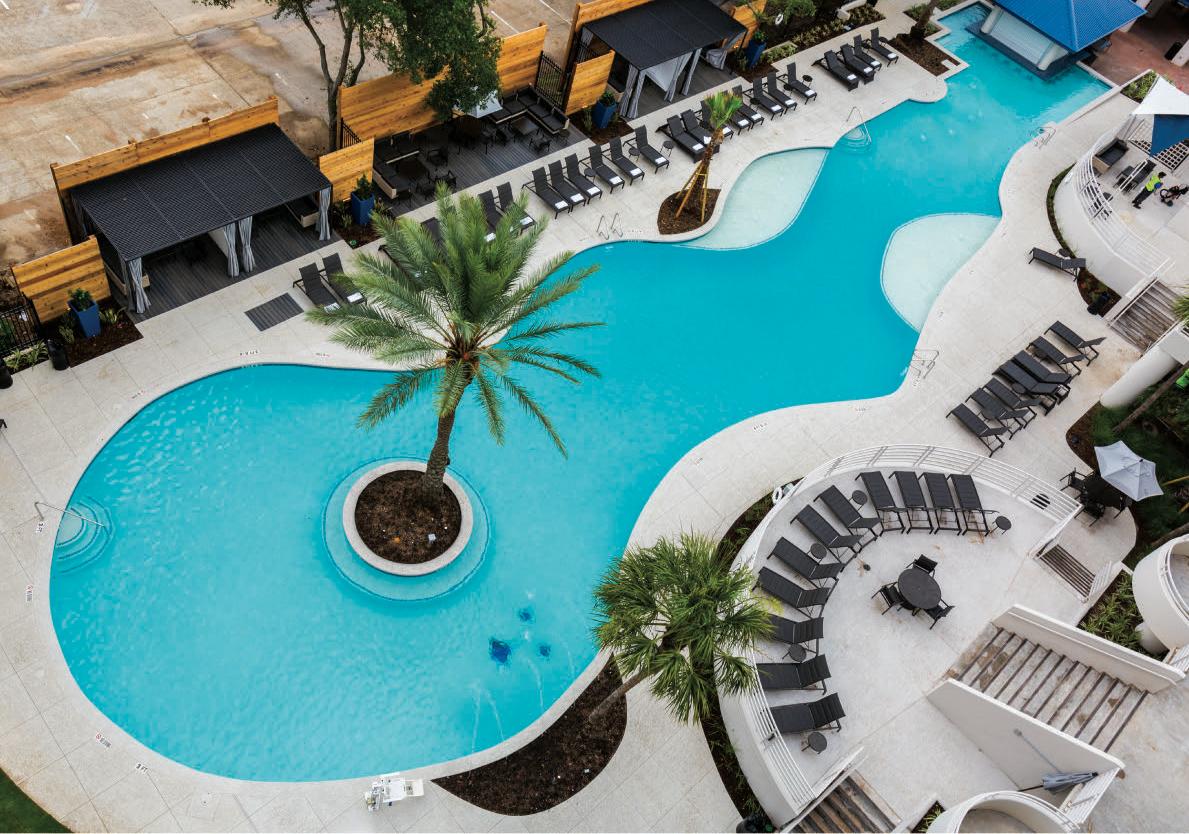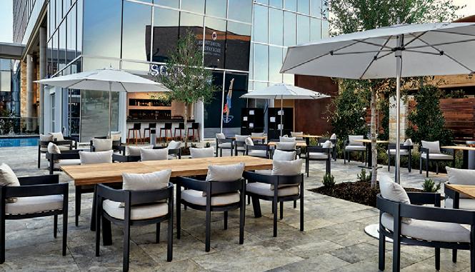meet ing space. Within a block of the hotel is the Toyota Music Factory complex. At the complex, attendees will find multiple restaurant and bar options. Entertainment includes live local music and international touring acts. At the hotel, outdoor activities for attendees are right beyond the rooms. “The spacious courtyards offer a space for guests to gather around the fire pit or enjoy live music and connect outside of the office,” Alonso says.