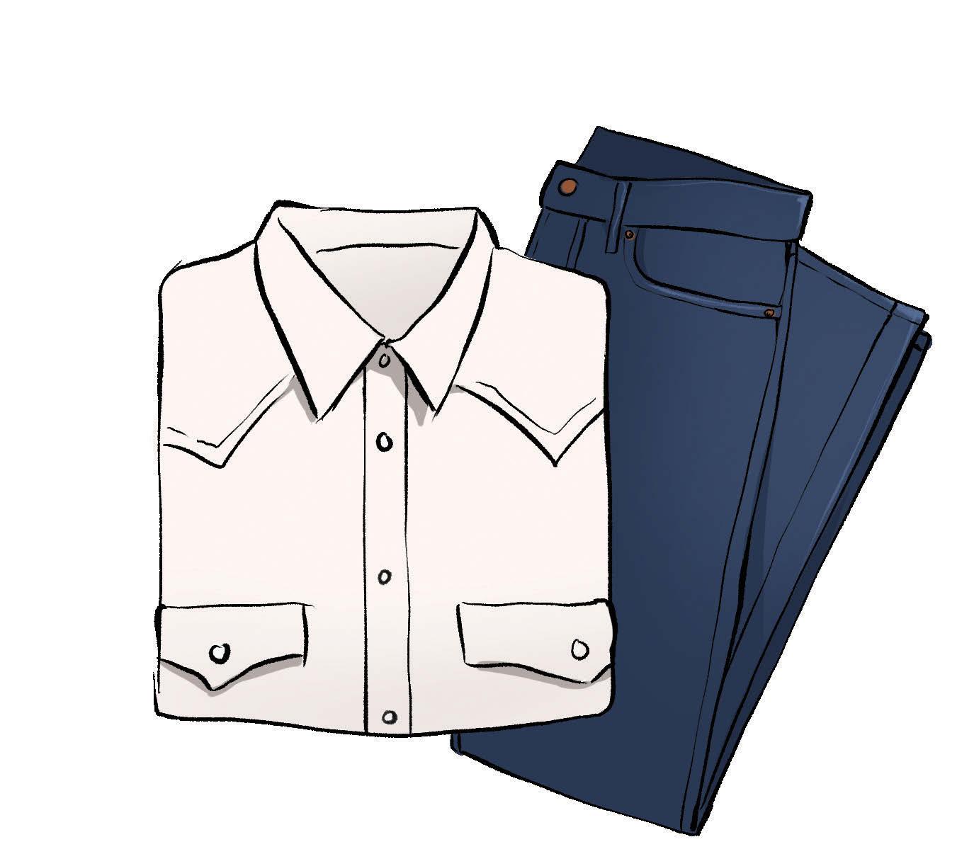 » Brand-new, well-fitting, starched jeans. Yes, really send the jeans to the dry cleaners and have them starched so they stay pressed all night.