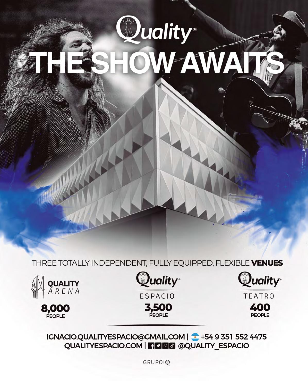 In the second city of Cordoba, Grupo Q this year put a roof on its Quality Arena to create an 8,000-capacity indoor venue (or 4,200 seated). Combined with its 1,500/3,500-cap Quality Espacio venue and 300/400-cap Quality Teatro, the complex represents, in Taier’s words, “the largest and most versatile events centre in our region.”