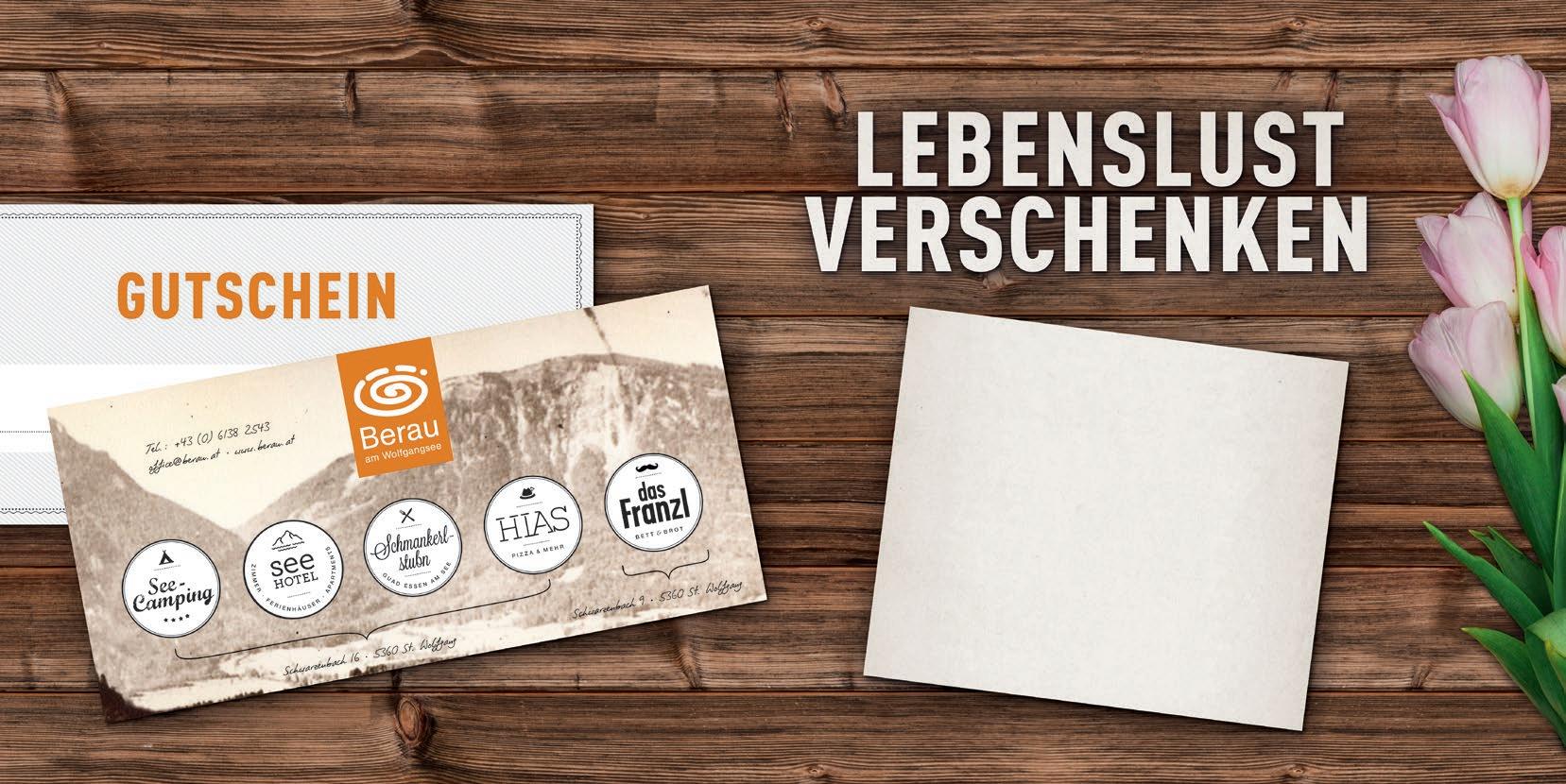 ... mit einem Gutschein von der Berau für Hotel, Camping und Restaurant. Stell Deinen Liebsten ein individuelles Reiseangebot zusammen, oder lass’ mit einem Wertgutschein selbst entscheiden. Kontaktiere uns einfach unter office@berau.at oder +43 6138