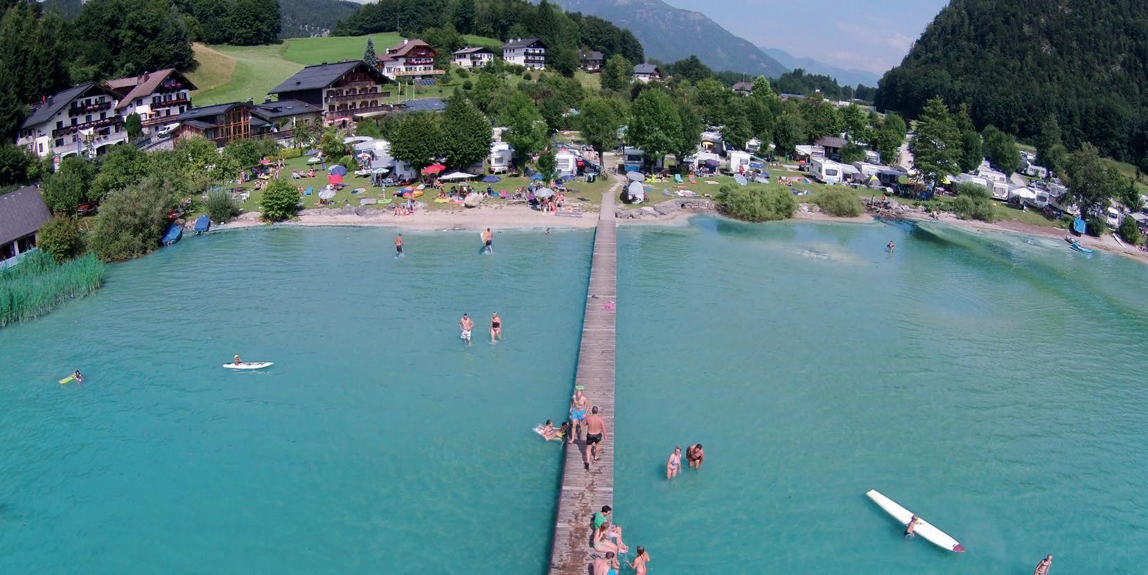 Unser 4* Campingplatz liegt direkt am Wolfgangsee inmitten einer schönen Naturlandschaft mit Wiesen und schattenspendenden Bäumen. Die großzügigen Stellplätze (bis 100m²) mit Strom, Wasser- und teilweise Abwasseranschluss, Kabel-TV und schnellem gratis WLAN sorgen für Komfort und die perfekte Wohlfühlatmosphäre.