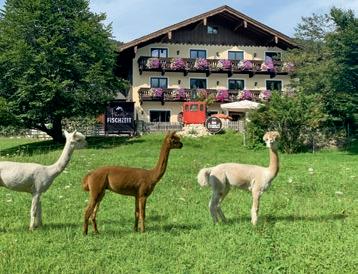 Erlebe die Alpakas hautnah auf der Terrasse beim „Das Franzl B&B", bitte keine Hunde mitbringen, von 16.00 - 17.00 Uhr