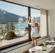 ... da wird einem warm ums Herz! Unser nagelneuer Wellnessbereich mit Seeblick ist der perfekte Rückzugsort um seinem Körper im Urlaub etwas Gutes zu tun. Einmal zur Ruhe kommen oder im Stillen bereits den nächsten Ausfl ug planen. Unsere See-Sauna ist der perfekte Ort um zu sinnieren, zu träumen oder einfach die Gedanken über den See schweifen zu lassen. See-Sauna mit 90°C, Berg-Sauna mit 70°C, Duschbereich, Infi nity Pool mit Seeblick, Teelounge mit Vitale cke, Liegebereich In & Outdoor