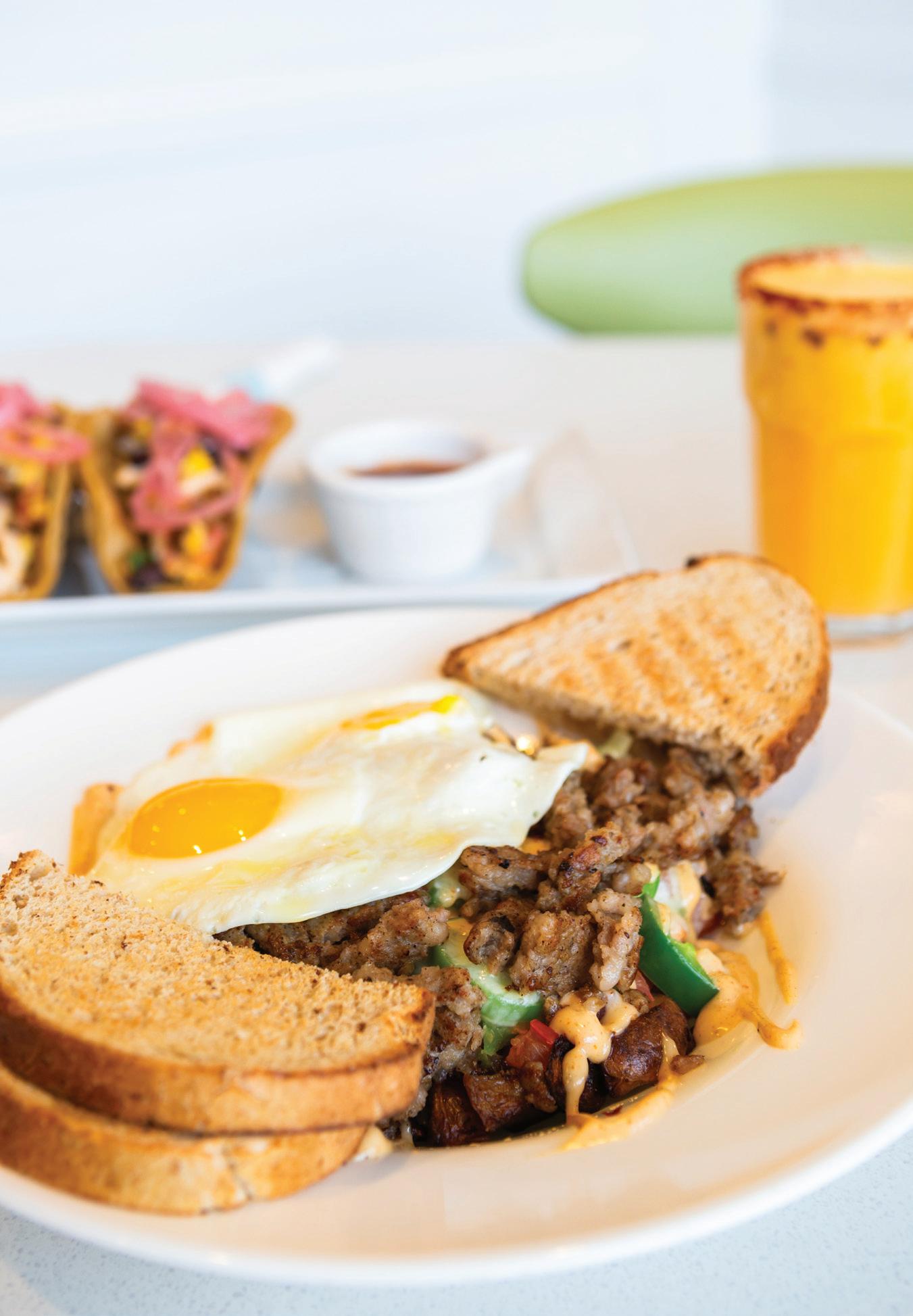 This “garden-themed” brunch spot is part of Meritage Hospitality Group. Its menu features breakfast entrées; lighter options, such as salads and grain bowls; glazed doughnut waffles; specialty beverages, such as freshly squeezed orange juice and breakfast cocktails; and more. Limited bar. Open daily. // 1600 East Beltline Ave NE, 301-8171; 434 Bridge St NW, 855-6907. morningbellebrunch.com. Breakfast, Lunch $$