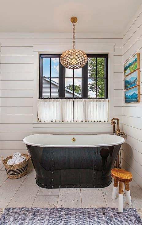 patterns alongside period photographs. A two-bedroom, two-bathroom suite also is on this level. The third level evokes “Found Money,” and has a bold metallic palette and impactful images. Every room on the top floor offers a view of downtown Houghton and the Portage Canal, where float planes are often seen taking off or landing during warmer months.