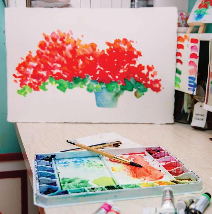 28 Studio Visit The queen of geraniums (and much more) looks back on a vibrant art career full of unexpected twists and splashes of creativity.