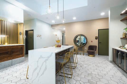 The rooms on this floor reflect “Old Money,” featuring jewel tones of ruby and emerald. This level boasts the most coveted room of the hotel — the Vault Chamber room, built around the bank’s onceoperational vault and encased by 1800s-era steel railroad beams, 18 inches of fortified concrete, and a two-ton impenetrable door with its original hardware.