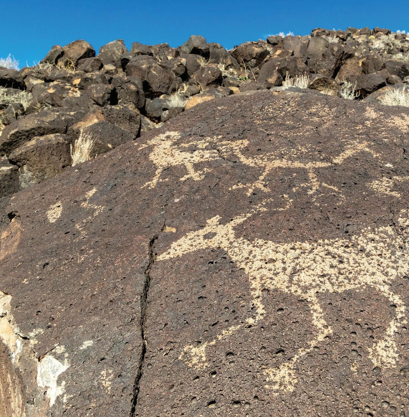 The carvings feature images of animals, people, crosses and other more mysterious objects. They are carved and chiseled into volcanic rock left over from eruptions in the Albuquerque Volcanic Field. Group can learn more about the area and its geology at the visitors center before heading to several spots within the park to see the petroglyphs up close.
