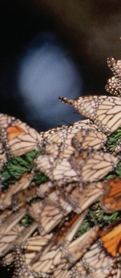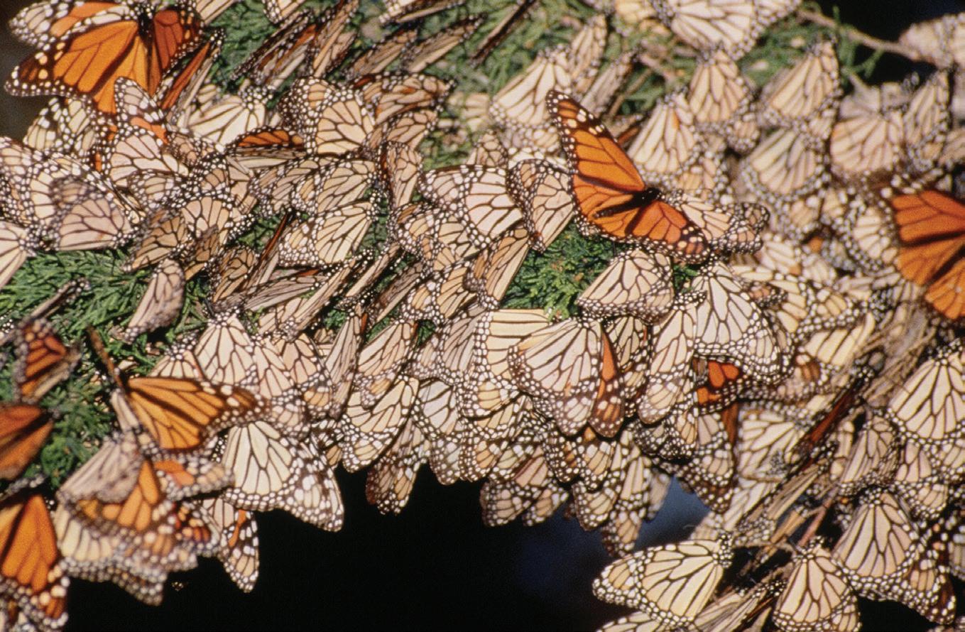 The monarchs cluster on tree branches in what’s called a chandelier, which can contain thousands of butterflies. They do this to conserve energy. On warm, sunny days at the sanctuary groups may see them flying around, while on cooler days, they’ll likely be clustered together.