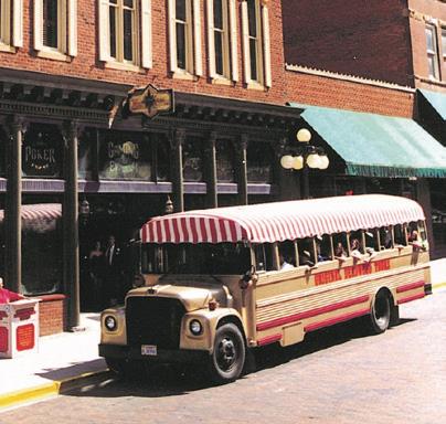 Climb aboard for a Deadwood adventure and be captivated by this historic town's colorful past. Our 1-hour, live-narrated tour travels down cobblestone streets and up to Mt. Moriah Cemetery. Come hear the history that made the Old West fun! Call for group rates. Additional savings when booking with Tatanka. 605.584.5678 • DeadwoodTour.com