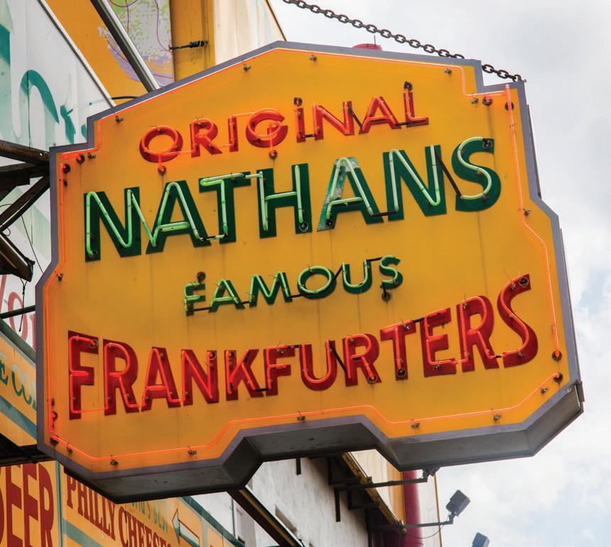 Dozens of restaurants and food stands line the boardwalk and the surrounding blocks. Coney Island is known for its hot dogs, and Nathan’s Famous is widely considered the signature vendor. It’s the site of the International Hot Dog Eating Contest, held annually on July 4. But there’s also Paul’s Daughter, a restaurant known for carnival food such as cotton candy and fries, and Ruby’s Bar and Grill, which has traditional bar fare.