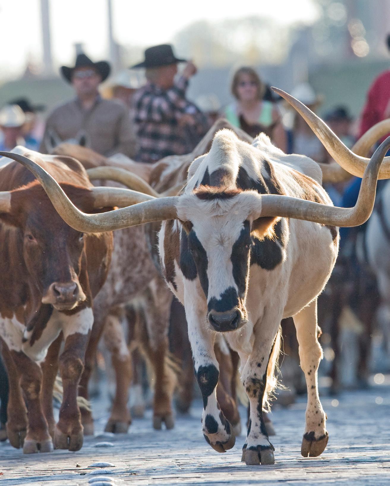 Daily cattle drives memorialize the history of the Fort Worth Stockyards, which is now a popular entertainment district.
