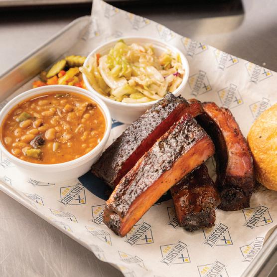 Barbecue fans can unite for a meal at the Dallas area Crossbuck BBQ. Using the low and slow method of central Texas barbecue, pitmasters smoke Texas-style brisket for up to 18 hours and serve it paired with unique sides like smoked and roasted potatoes with yellow curry and desert line hominy topped with cotija cheese.