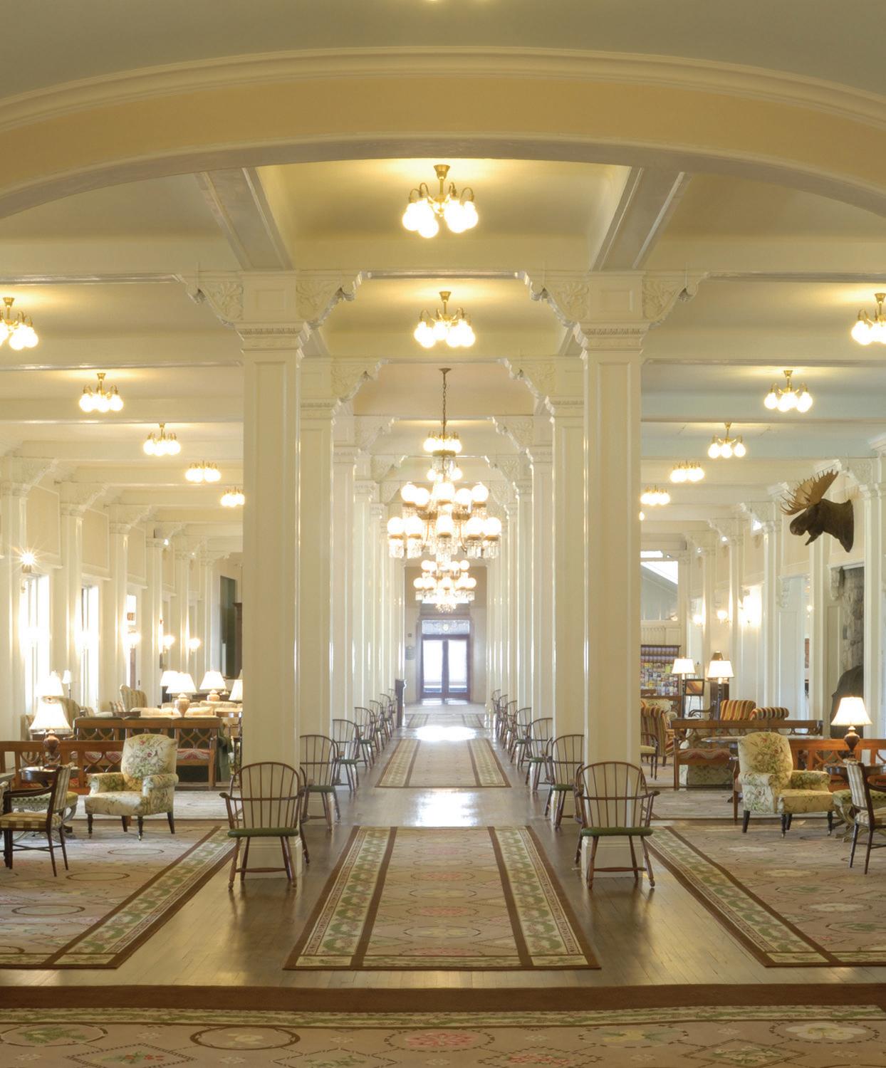 the year, earning it the moniker “America’s Summer Place.” It first opened in 1887 and is notable for its beloved architectural features, such as the three-story, 660-foot-long covered veranda, thought to be one of the longest in the world. The hotel became a National Historic Landmark in 1989, but a multimillion-dollar renovation was just completed to refresh some of its spaces on the main floor.