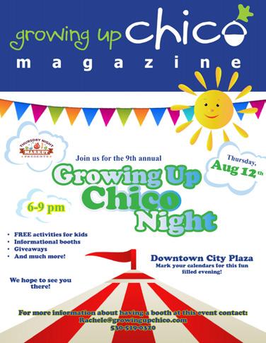 Growing Up Chico Magazine is published quarterly and available, free, at over 200 family-friendly locations throughout Butte County. We are also available online at www.growingupchico. com.