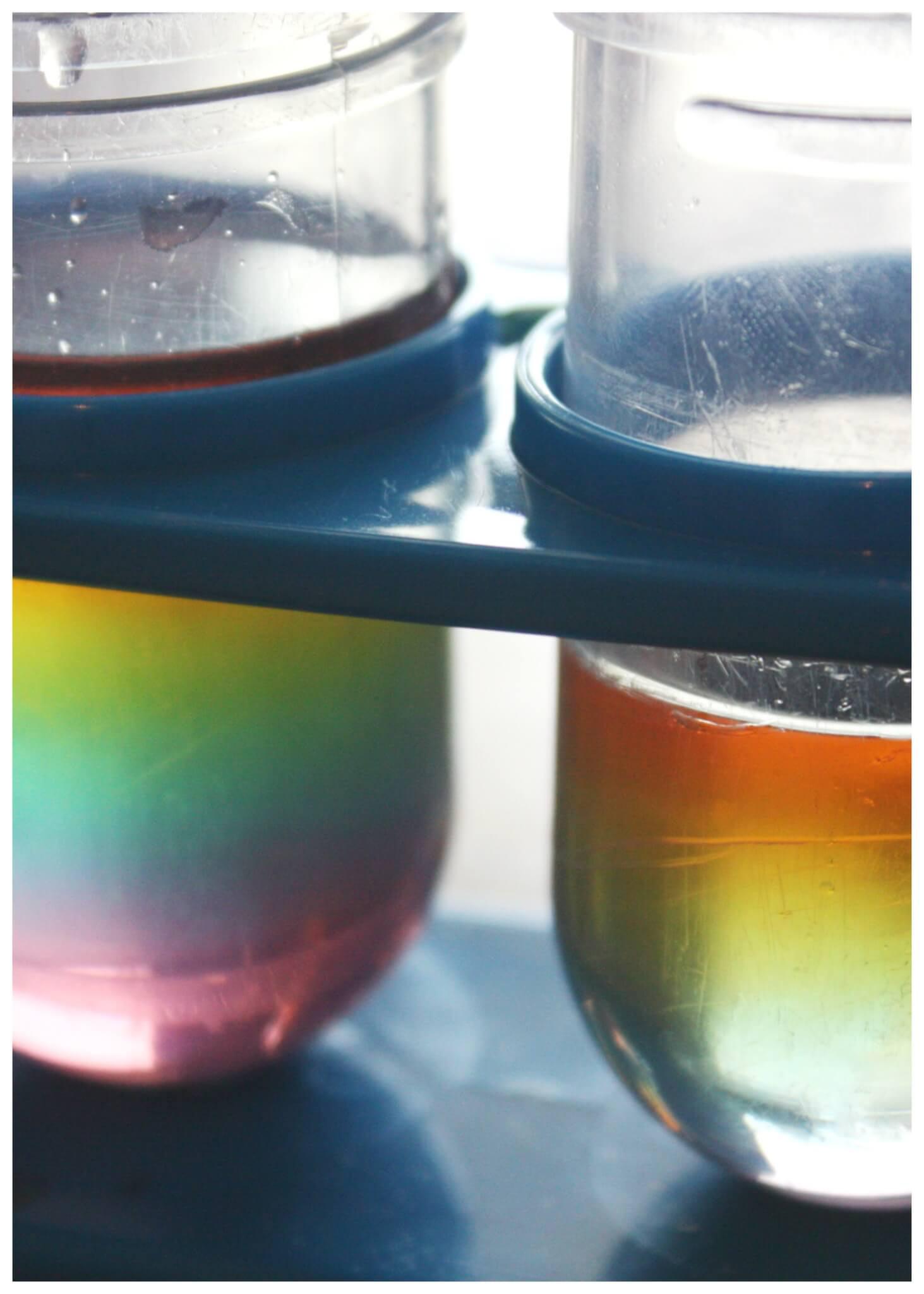 Note: For this month’s experiment, you will need to do a little research when purchasing your supplies. In order to pick juices with different densities, you will need to look at the amount of sugar per volume. Powdered or canned drinks do not work well because of their water content, so be sure to get real juices.