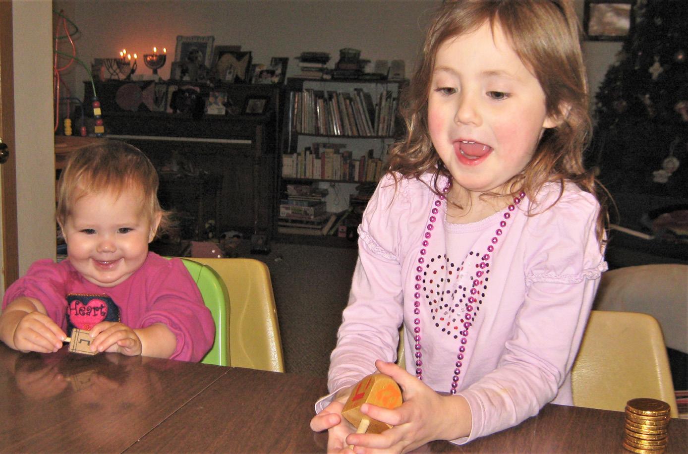 Hanukkah is a festive Jewish holiday commemorating an extraordinary wonder. About 1,800 years ago, the Greeks desecrated the Holy Temple in Jerusalem. After many years, the Temple was finally restored to the Jewish people. As they rededicated this most holy of places, they had only enough oil to burn the required sacred menorah (or candelabra) for one day. Miraculously, however, the oil lasted for eight days, until more oil could be made. This miracle is celebrated by Jewish people around the world with the nightly lighting of the menorah. For eight days the candles flicker and glow and impart a beautiful light. Hanukkah is a time for devouring foods fried in oil to remember the miracle of the oil long ago. Jelly doughnuts and potato latkes fill happy bellies while families play dreidel. Dreidel is a traditional game in which players spin a four-sided top to win nuts, coins, or chocolates. Families cuddle up to read Hanukkah storybooks and make menorah pictures with little handprints. Hanukkah is eight days of sweet, cozy family time to remember all the miracles, big and small, in our lives.