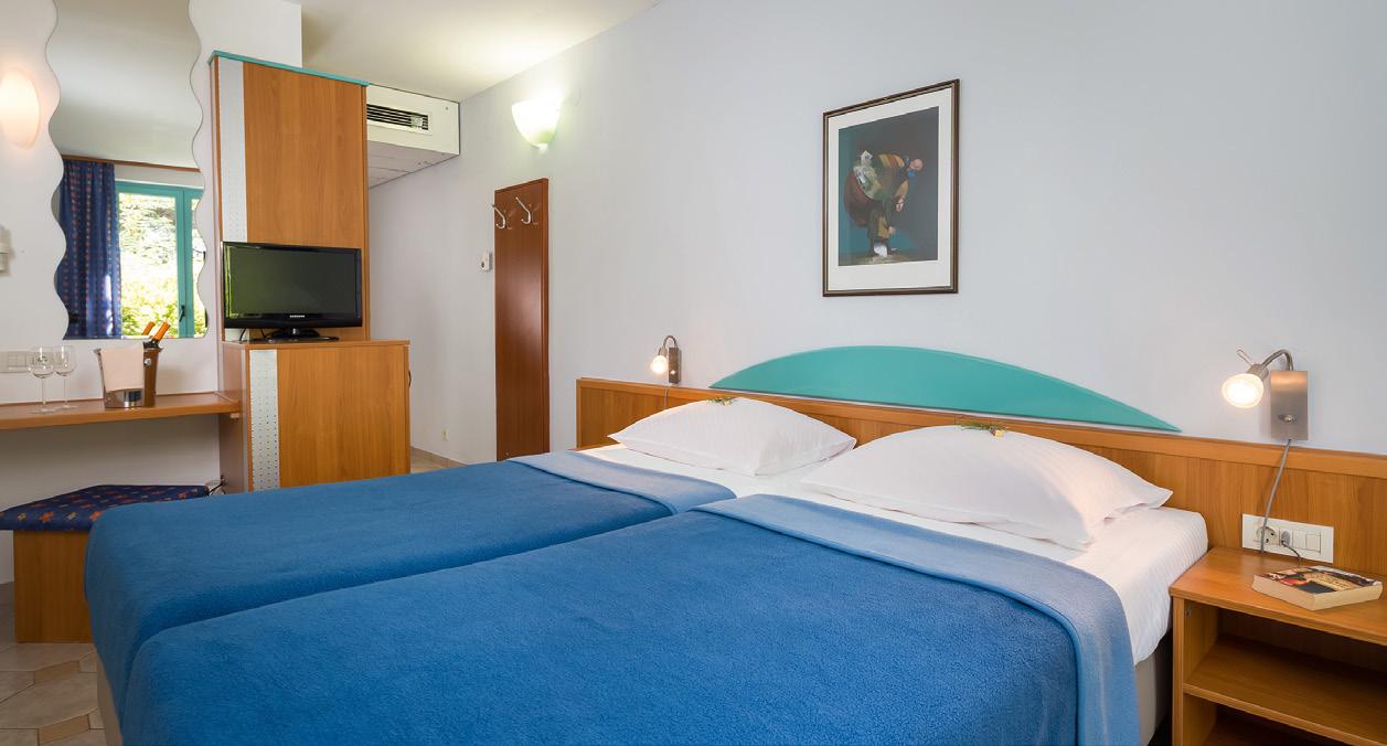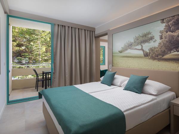 Landeskategorie: 4**** für Hoteleinrichtung, Superiorzimmer und Suiten, 3*** für Standardzimmer. Großzügige, vom dalmatinischen Stararchitek ten Prof. Dinko Kovačic geplante Hotelanlage, harmonisch in den Süd hang eingebettet, direkt an der einladenden Strandpromenade gelegen, welche 6 Pavillons mit 129 Standardzimmer, 131 Superiorzimmer und 27 Suiten umfasst.