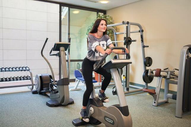 In unserem voll klimatisierten Fitnessraum stehen für Sie 1 Ergometer und 1 Crosstrainer sowie verschiedene Kraftgeräte zur freien Benut zung zur Verfügung (die Fitnessgeräte sind großteils von der Marke Technogym).