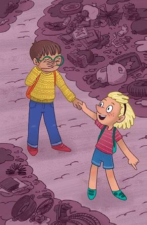 Cuando salen del colegio, Marcos le da la mano a Olga y anda con los ojos cerrados. No soporta ver el desorden de la basura que llena cada rincón del mundo.
