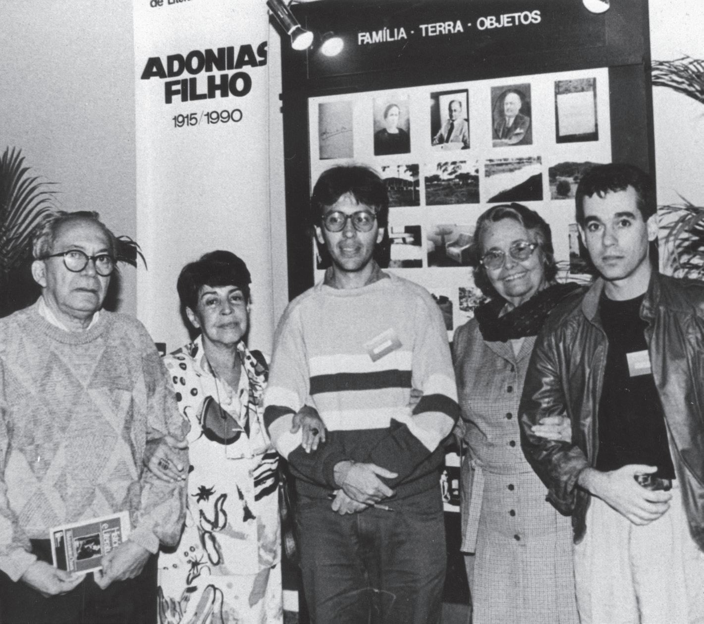 Com Lêdo Ivo, sua esposa, Maria Leda, Jorge Fernando dos Santos e Rachel de Queiroz, de braços dados com Carlos Herculano Lopes, durante a quinta Bienal Nestlé de Literatura Brasileira, realizada em São Paulo, em 1990, da qual ele foi vencedor na categoria Romance, com Sombras de julho