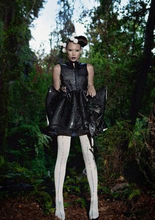 For the human models, Anthony presented an executive collection that spoke volumes in terms of his evolution from past to present works. There were sensual, brightly colored gowns of embroidered flora, sprinkled with glamorous glass beading and crystals. The accompanying canines and one feline were almost all fashioned like rock's bad boys.