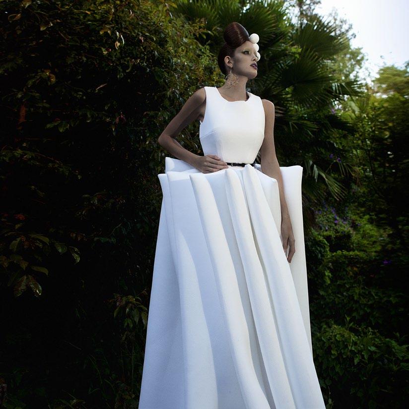Anthony tried his hand at sculptural pieces inspired by the Henri Matisse Blue Nudes, both on a male and a female model, done in recycled plastic woven into royal blue netting. It was a collection of joyful inspirations making for a huge fashion party.