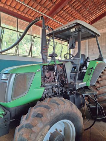 O trator continha injeção do tipo mecânica direta, refrigerado a água com circulação forçada, quatro cilindros em linha e deslocamento volumétrico de 3.922 cm³, razão volumétrica de compressão em 18:1, com potência nominal indicada pelo fabricante de 105 cv (77,2 kW) a 2.300 rpm (Figura 1).