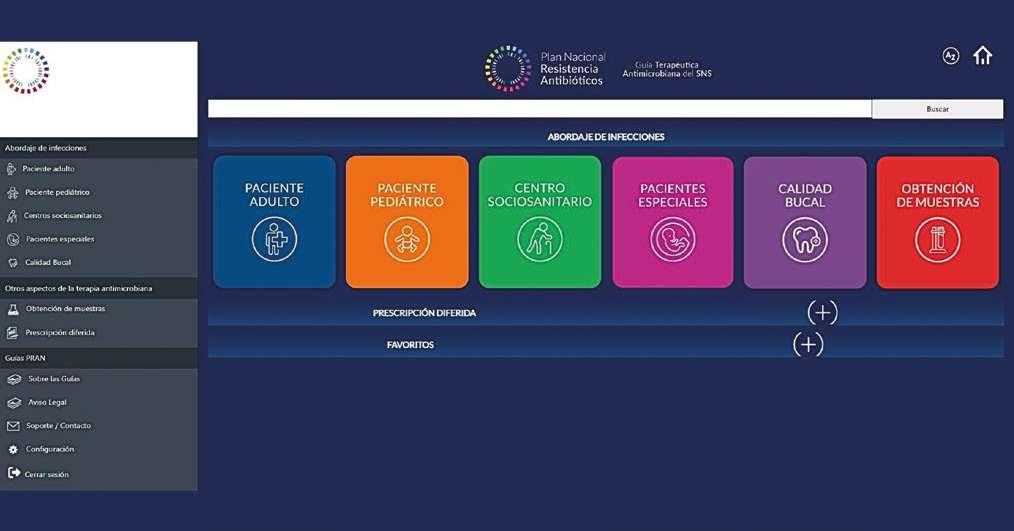 El caso de la guía terapéutica del Sistema Nacional de Salud (SNS) es de especial relevancia en el sector de la odontología, ya que puede ser utilizada como elemento de apoyo a la prescripción. El fin de esta guía, que se presenta tanto en formato de aplicación móvil como en versión web, es aportar recomendaciones para el abordaje de las enfermedades infecciosas más prevalentes en la comunidad, basándose en las últimas evidencias disponibles y en los datos de resistencias de los principales patógenos. De esta forma, se contribuye a la optimización y homogeneización de la prescripción de los tratamientos antibióticos y, con ello, a la reducción del riesgo de desarrollo de resistencia. La guía es un proyecto vivo, sujeto a una revisión permanente y las infecciones odontológicas han sido una de las prioridades del PRAN a la hora de actualizarla. Desde 2024, incluye una actualización de los capítulos de odontología sobre el abordaje de los procesos de la cavidad bucal, que ha sido