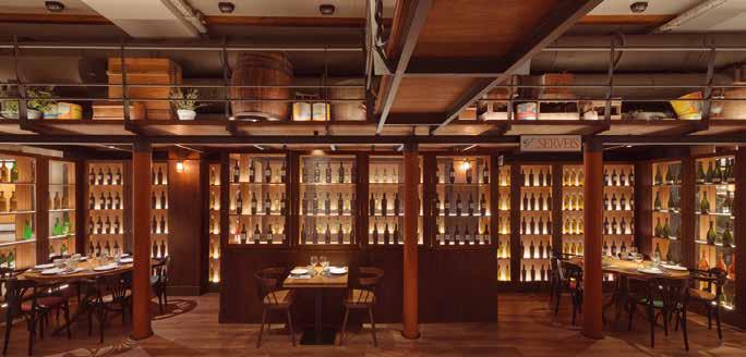 5- El estudio catalán Carlos Martínez Interiors ha diseñado unas luminarias abrazando a los pilares de forja centrales haciendo un guiño a las jaulas de los búhos. Se han escogido tonos de madera zebrano, con sus vetas marcadas que recuerdan al plumaje que poseen estas aves rapaces; mármoles exóticos que recuerdan, junto a la vegetación un espacio selvático: natural y salvaje.