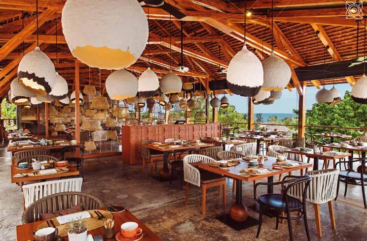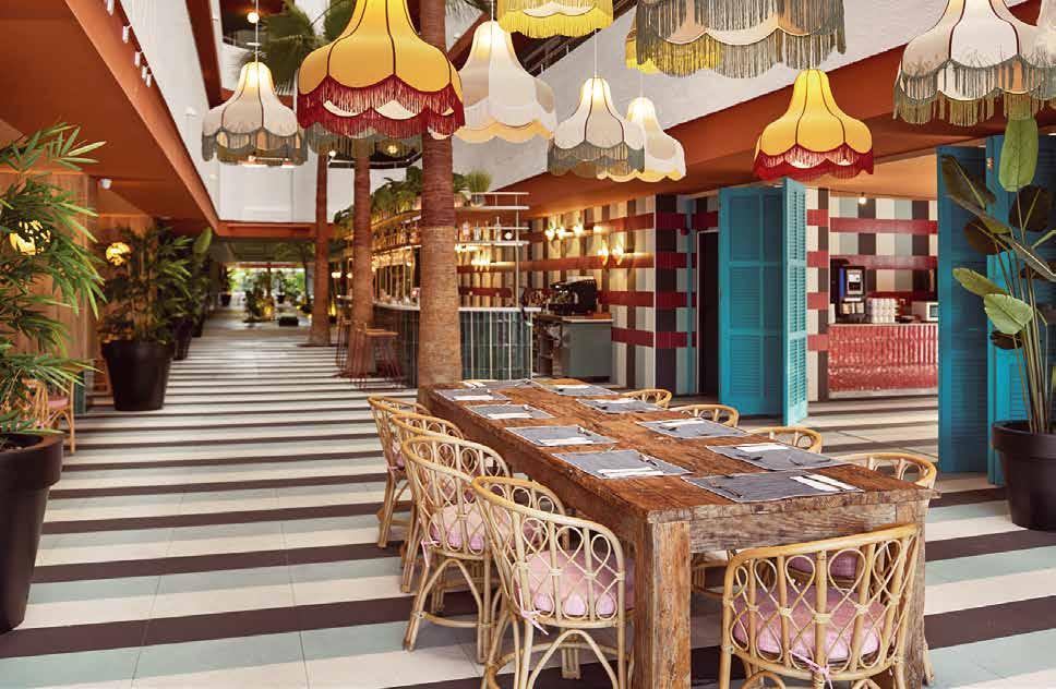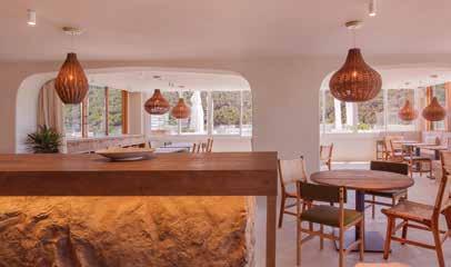 13, 14, 15, 16 y 17- Mondrian Ibiza y Hyde Ibiza, situados uno al lado del otro dentro del complejo perteneciente a la cadena hotelera internacional Ennismore, suman una gran propuesta lúdica que incluye nueve restaurantes y bares con zonas de piscina, vida nocturna y locales de música. A destacar, Sun & Moon, en el Lobby de Mondrian, abierto todo el día; mientras Niko y Cuyo son compartidos por Mondrian Ibiza y Hyde Ibiza. Niko es un restaurante japonés discreto y moderno, con carácter minimalista, literalmente colgado sobre el mar Mediterráneo, con la naturaleza muy presente en todo el proyecto. La piedra natural viste la barra de sushi, donde el comensal puede ver cómo se elaboran los platos. A la par que llaman la atención las diferentes obras de arte, realizadas en la técnica de “paper clay” de la artista española Esther Rosa. El interiorismo de Cuyo, mientras, viene marcado por una paleta cromática salmón y verde oliva, que ensalzan la preferencia del local por lo orgánico y lo natural. Por ese motivo, predomina el uso de materiales de la tierra, como los morteros de arcilla, la cerámica, el lino, el cuero, la madera y el mimbre. Todo ello, rodeado de abundante vegetación natural, con la que se crean patios interiores y paredes revestidas con plantas autóctonas.