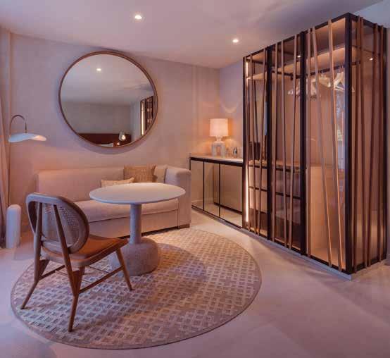 La entrada es envolvente: sus paredes parecen talladas en la propia naturaleza, con rincones para asientos modernos y arte. Una íntima zona de recepción atrae a los visitantes a través de paredes y suelos de un azul intenso y un escritorio dorado reflectante que contrastan con las suaves paredes de tonos neutros. Mientras, la zona del lobby, Sun & Moon se convierte en el punto de encuentro imprescindible a cualquier hora del día.