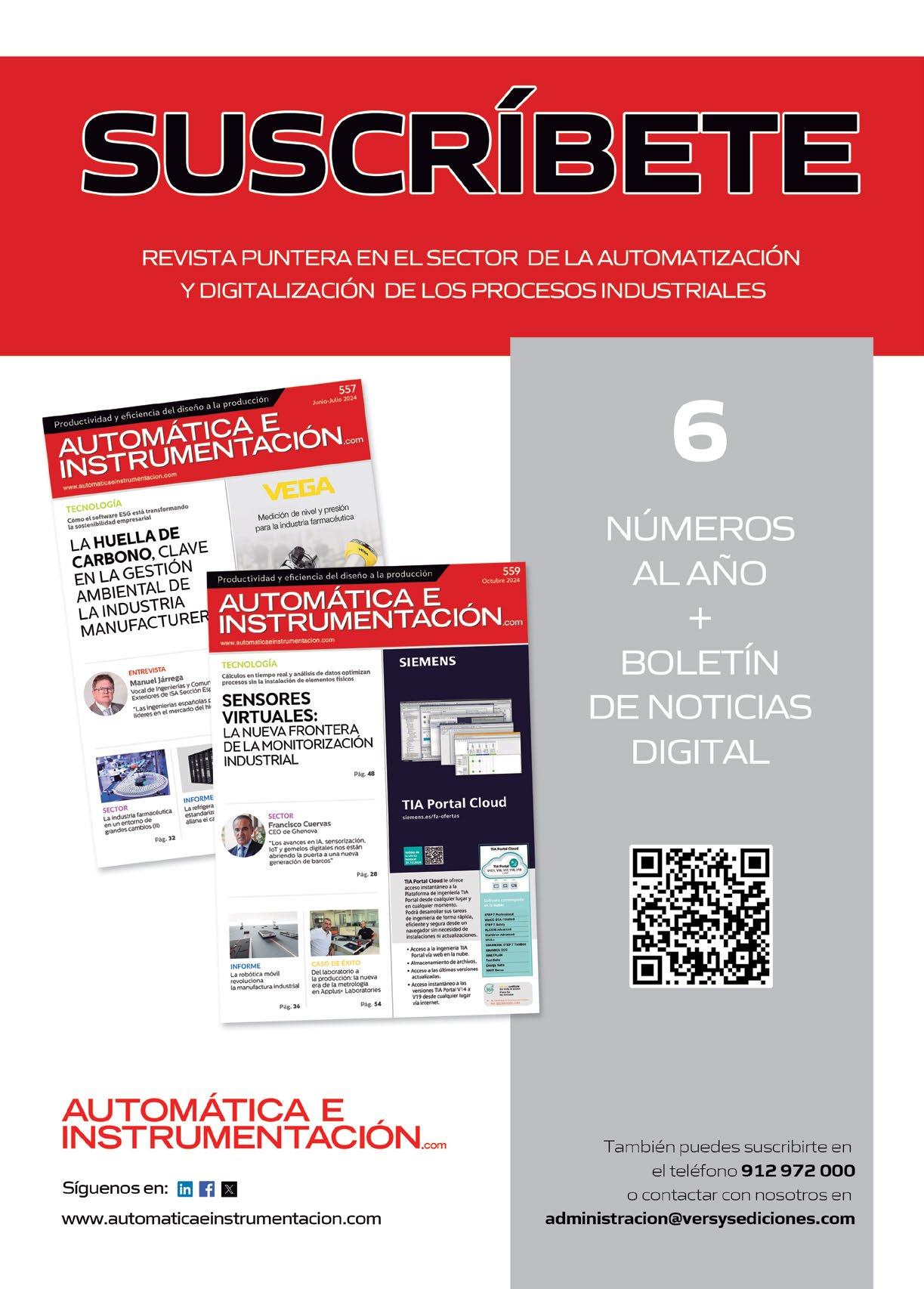 Copyrigth Versys Ediciones Técnicas S.L. La suscripción a esta publicación autoriza el uso exclusivo y personal de la misma por parte del suscriptor. Cualquier otra reproducción, distribución, comunicación pública o transformación de esta publicación sólo puede ser realizada con la autorización de sus titulares. En particular, la Editorial, a los efectos previstos en el art. 32.1 párrafo 2 del vigente TRLPI, se opone expresamente a que cualquier fragmento de esta obra sea utilizado para la realización de resúmenes de prensa, salvo que cuente con la autorización específica. Diríjase a CEDRO (Centro Español de Derechos Reprográficos) si necesita fotocopiar, escanear, distribuir o poner a disposición de otros usuarios algún fragmento de esta obra, o si quiere utilizarla para elaborar resúmenes de prensa (www.conlicencia.com; 917021970/932720447) Las opiniones y conceptos vertidos en los artículos firmados lo son exclusivamente de sus autores, sin que la revista los comparta necesariamente.