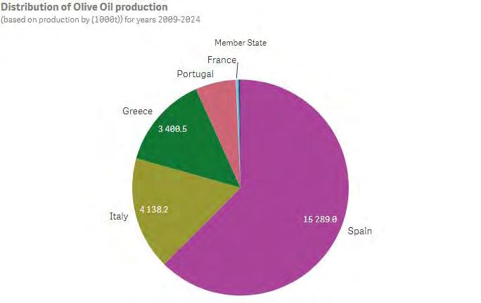 Evolución de la producción europea de aceite de oliva desde la campaña 2012/2013 hasta la actual, donde se incluyen los datos comparados de todos los países europeos productores de aceite de oliva. Consulta realizada 24 de julio de 2025 sobre datos actualizados al 16 de julio. Fuente: European Commisssion/Directorate-General for Agriculture and Rural Development/Agridata.