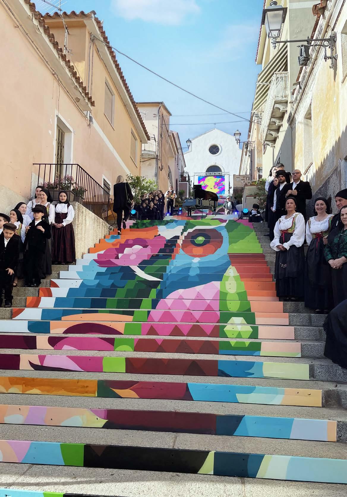 Arzachena today is a fabulous colourful place, further embellished by the now-famous art installation on the staircase of the church of Santa Lucia, which changes every year