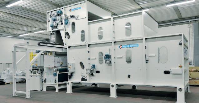 Today, Officine Gorgeri produces machinery and systems for fraying, for cleaning natural fibres, loaders to feed the carding process, automatic boxes for storage and blending, openers for recovering endof-line selvedges, vacuum cleaners and accessories for managing the pneumatic transport of material. The special feature of the products is that 70% of the machinery is standard, while the remaining 30% is the result of continuous research and development.