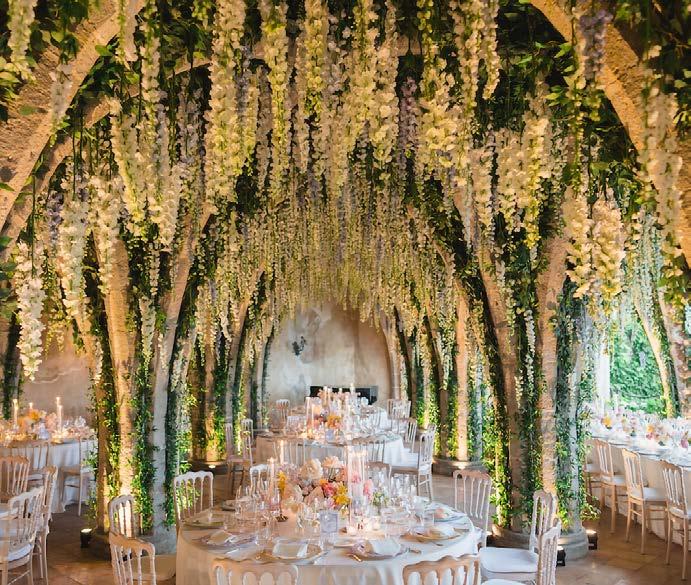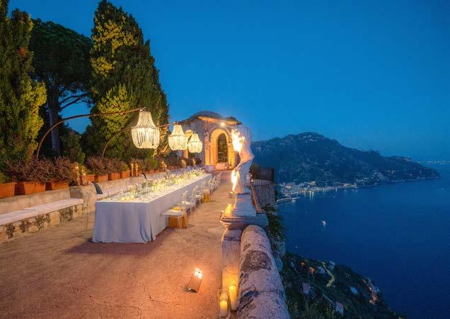Inside, Villa Cimbrone is just as captivating, featuring striking spaces like the Gothic Loggia, a semi-open hall with elegant, refned lines. From the music and lighting to the foral arrangements and entertainment, every event is curated with the utmost attention to detail, ensuring that each moment is perfectly aligned with the villa’s natural beauty. It’s a true sensory journey through the beauty and culture of the Amalf Coast, a place where dreams are effortlessly brought to life.