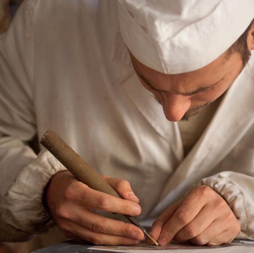 Si entrava ‘a bottega’ spesso giovanissimi e gli apprendisti erano afdati all’insegnamento di esperti maestri capaci di guidarne la formazione tecnica e la crescita artistica, oltre ad avere il compito di tramandare uno specifco stile di ripresa che oggi possiamo defnire ‘stile Locchi’: un’impronta peculiare e prontamente riconoscibile anche nel susseguirsi delle varie generazioni.