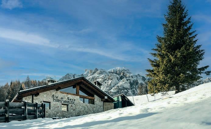 strada in piccole e intime capanne; dall’altro ci si accomoda sotto il pergolato di un glicine secolare.