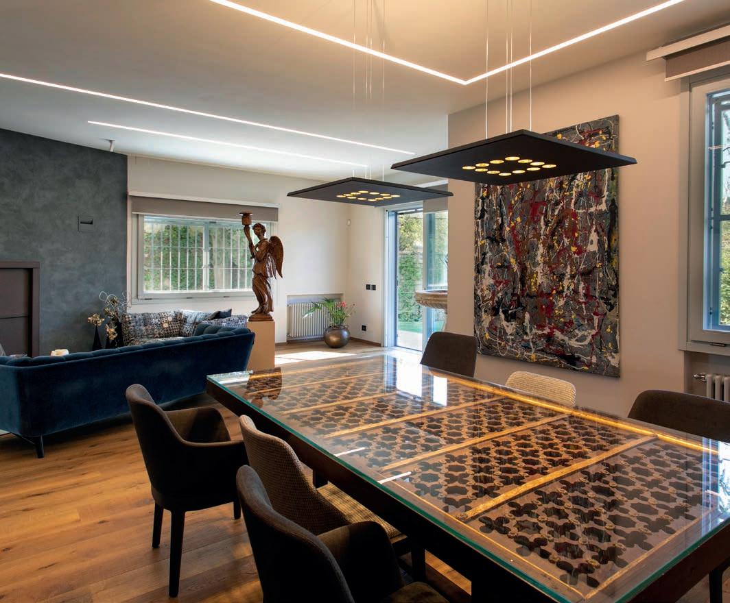 We enjoy creating very sleek and minimalist boxes and then ‘ contaminate’ them with decorations, which are added by using not dull colors but various natural materials that, with their texture and an expert use of light, enrich the surfaces and make them vibrant. And we also enjoy furnishing rooms with tailor-made furniture, handmade creations and sophisticated vintage pieces. We try not to embrace short-lived trends, but rather to adopt a cross-cutting and evergreen style.