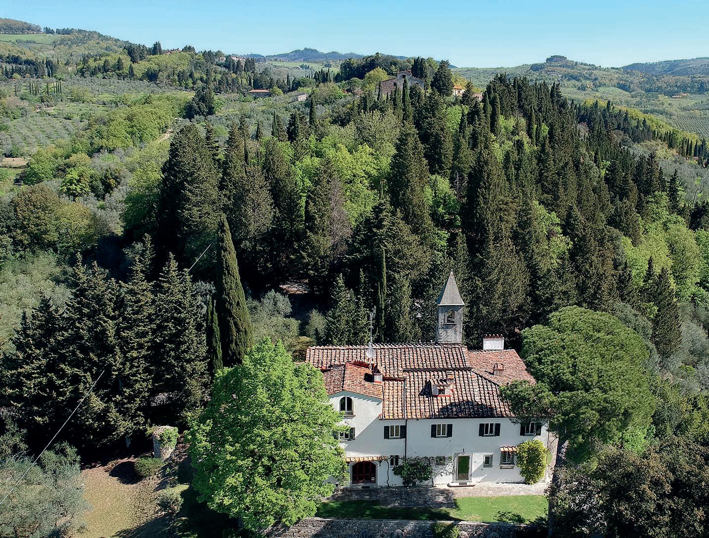 A perfectly restored 15th-century historic villa along with an ancient, deconsecrated church and a plot of land with an olive grove on the hills of Fiesole, just north of Florence