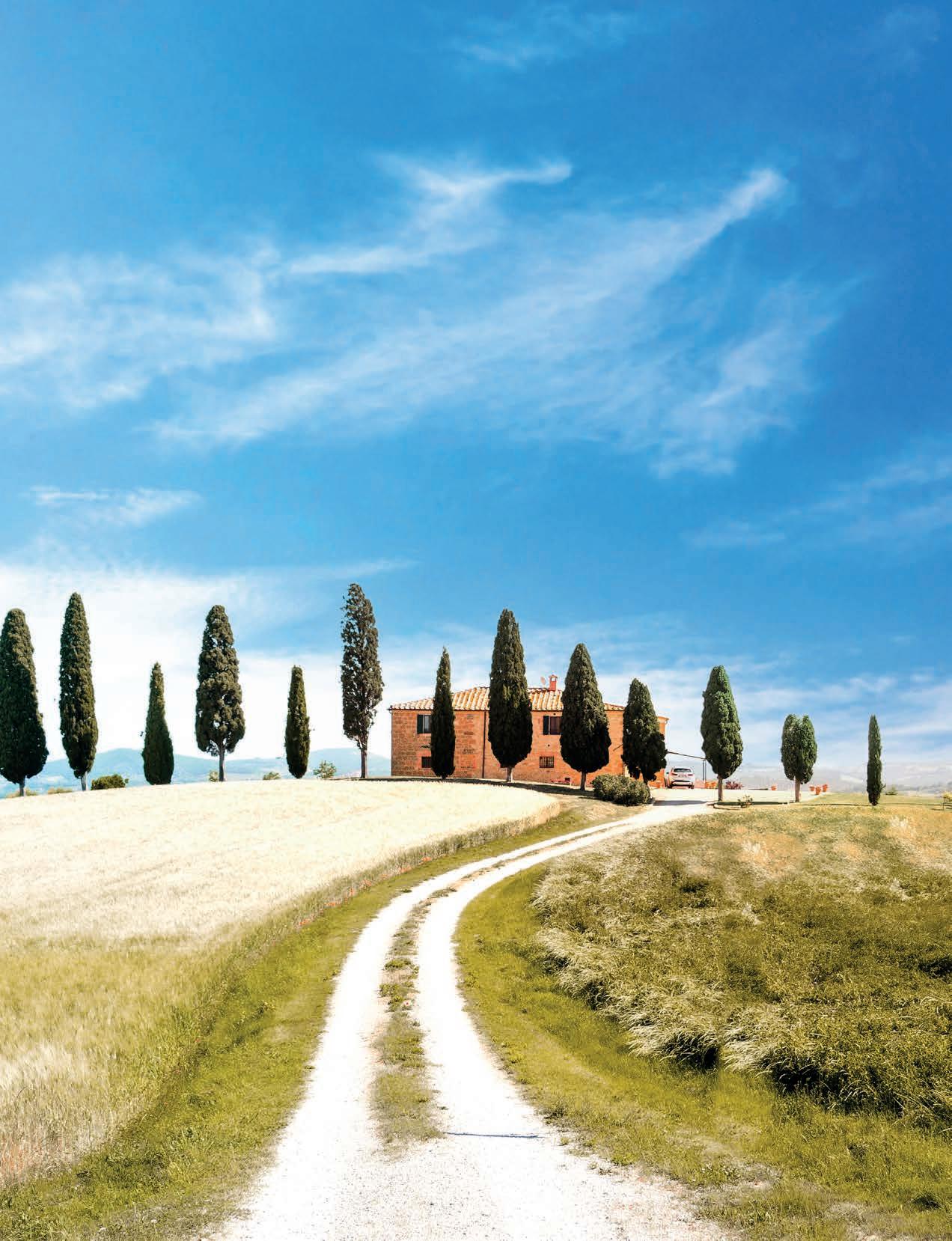 route which winds through long panoramic bends among cypresses and medieval castles, surrounded by vineyards that have become home to renowned wineries. Siena is just around the corner, ready to bewitch you with its wonders. Along this route, you go through charming villages such
